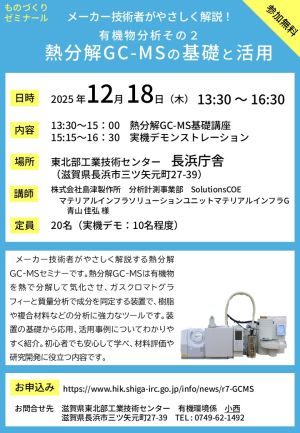 【終了】ものづくりゼミナール メーカー技術者がやさしく解説! 有機物分析その2 熱分解GC-MSの基礎と活用